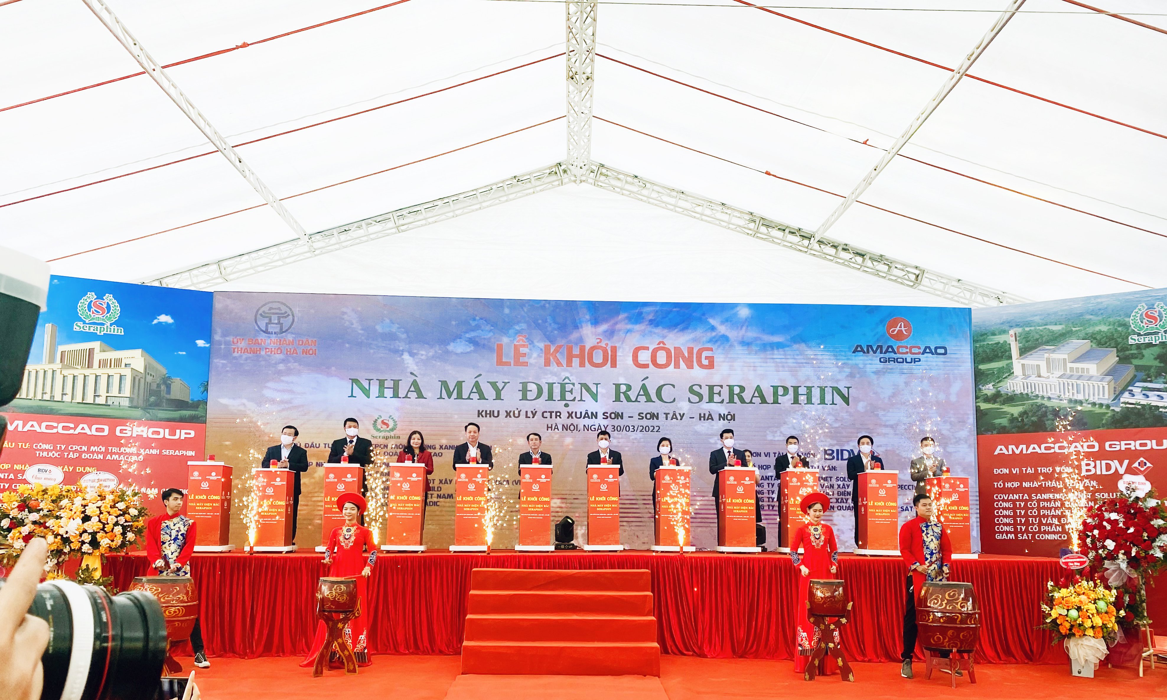 Là đơn vị tư vấn pháp lý cho CTCP Công nghệ môi trường xanh Seraphin thuộc Tập đoàn AMACCAO và UBND TP. Hà Nội trong quá trình xây dựng, đàm phán và ký kết Hợp đồng dịch vụ xử lý chất thải rắn sinh hoạt phát điện, Ban lãnh đạo Công ty Luật Vietthink cũng có mặt để tham dự buổi Lễ khởi công và chúc mừng Nhà đầu tư.
