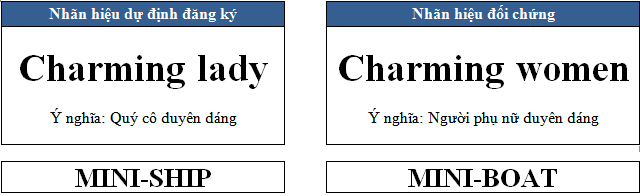 Dù được trình bày bằng ngôn ngữ khác nhau nhưng 2 nhãn hiệu bị coi là tương tự do có cùng ý nghĩa, nhãn hiệu này chỉ là sự dịch nghĩa của nhãn hiệu khác. Một điều cần lưu ý, theo quy định hiện hành về sở hữu trí tuệ tại Việt Nam, tiếng Anh, Pháp, Nga và Hán được coi là những ngôn ngữ thông dụng, vì vậy mọi sự chuyển nghĩa/dịch nghĩa nhãn hiệu từ tiếng Anh, Pháp, Nga và Hán sang tiếng Việt hoặc ngược lại đều có thể bị đánh giá là tương tự với nhau.